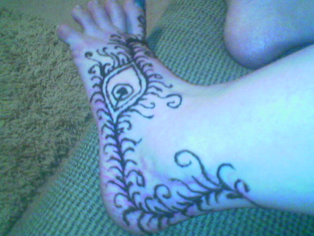 I do have a picture of my ankle after I drew a henna tattoo on that ankle, and here's a picture of it before I took the henna off. You can see the scar a little bit in this pic, and see that my ankle is a little swollen. This was about 4-5 months after the surgery.